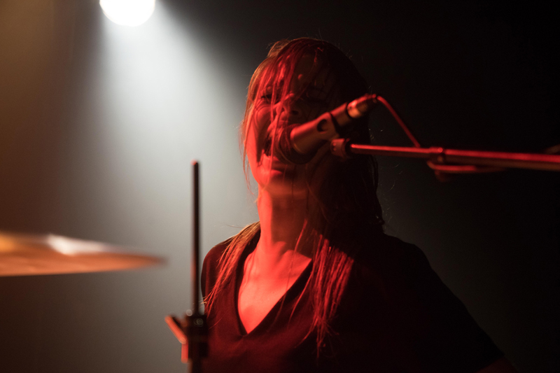 Au milieu du set, la chanteuse/batteuse cède sa place à Joris Casier (batteur de Steak Number Eight) pour se concentrer sur la voix, dans une mélodie plus douce mais toujours dynamique. Les membres du groupe s’échangent des regards complices. L’interlude, loin de créer une scission dans l’enchaînement des morceaux, y ajoute une pincée de sel.