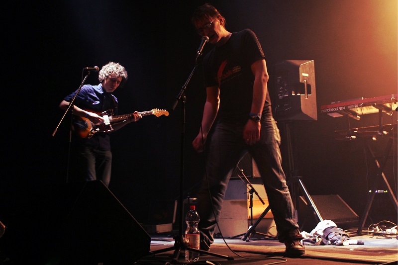 On compte donc sur Cheveu pour nous remettre d’aplomb après un concert sans vagues et une attente interminable pour accéder au bar! Et dès les premières notes, l’ambiance change du tout au tout mais, une fois de plus, le son n’est pas vraiment au rendez-vous. Le début du concert est parasité par une foule de soucis techniques mais le trio parvient tout de même à imposer son énergie et ses compositions de qualité. Annonçant cette date comme la release de leur dernier album BUM (sorti ce 4 février sur l’excellent Born Bad Records), le groupe déploie ses sonorités reconnaissables entre toutes et ses nouveautés avec brio. C’est à la fois sale et propre, électrisant et planant, avec une tribalité sous-jacente qui réveille enfin le 210. Les Bordelais nous font grâce d’une version très personnelle du classique Ice Ice Baby de Vanilla Ice, nous donnant presque envie de remercier le rappeur d’avoir permis la chose. David Lemoine, toujours hyperkinétique, nous gratifie de son parlé-chanté décapant et déchane les passions, tel un prophète du chaos, en terminant le show dressé sur ses machines.