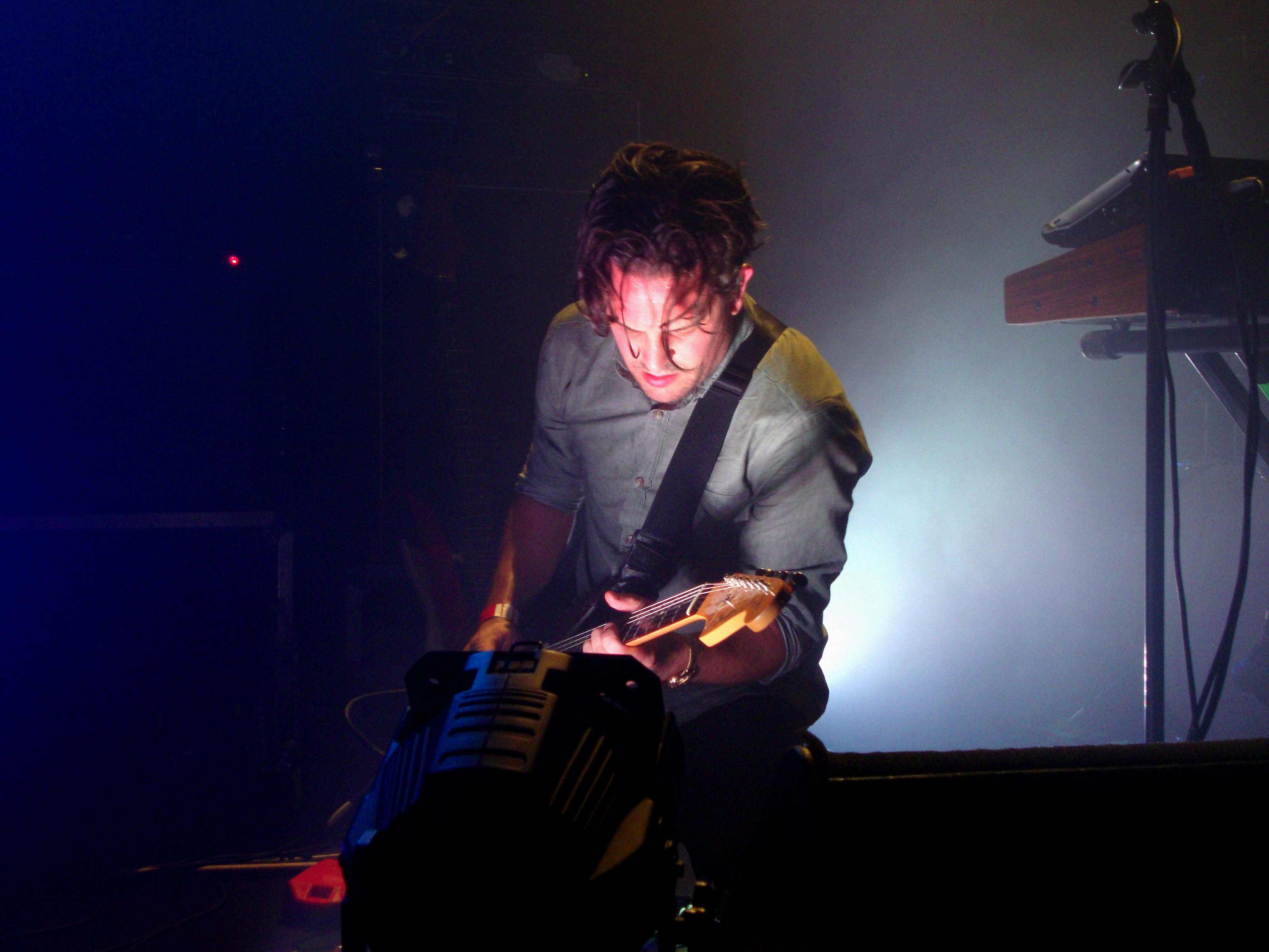 21h10, la foule est maintenant beaucoup plus dense. Et pour cause! C’est au tour de PVT (anciennement Pivot) de prendre possession des lieux. Mélangeant habillement l’électro et le math rock, ce trio australien vient tout juste de sortir son quatrième album : Homosapien. Une nouvelle plaque que le groupe est venu présenter au public européen au cours d’une tournée qui passera par Bruxelles (La Chocolaterie), le 18 mai prochain. Des voix qui se superposent en cascade, des boucles de synthé analogique lancinantes et atmosphériques, une prestation scénique fulgurante pleine d’émotions, ce soir, PVT nous offre sans conteste un très bon concert. Pendant une heure, les titres de leur dernier opus défilent sous les acclamations de l’audience fébrile, jusqu’au très applaudi Window, issu de leur précédent album Church With No Magic. Voici déjà venue l’heure pour nos trois aussies de céder la scène aux Canadiens de Suuns ; et c’est avec Homosapien, le titre éponyme de leur nouveau disque, que la formation décide de clore cet excellent moment musical.