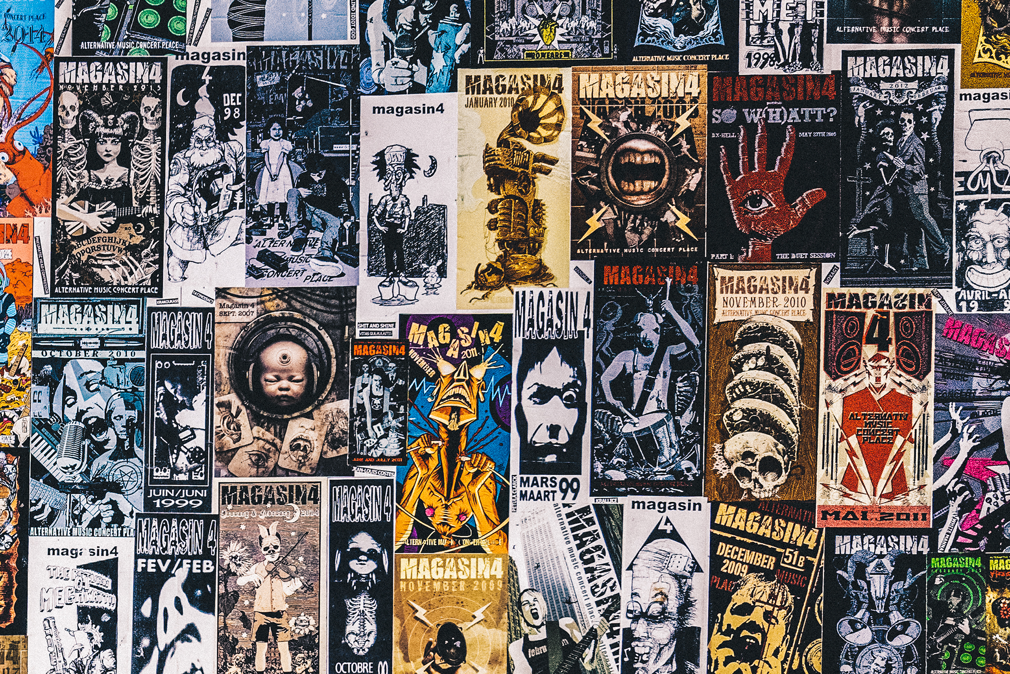 Cette année, on fête nos 25 ans. Avant le Magasin 4, il y avait le Bulten, un lieu tenu par Éric de PPZ30 et d’autres personnes. Une fois que le Bulten a fermé, Éric et d’autres, dont les frères Masson qui font partie de Pneumatic Head Compressor, ont ouvert une salle de concert destinée à faire jouer les musiciens alternatifs. Le bâtiment, situé au numéro 4 de la rue du Magasin, comptait deux étages. Il n’y avait rien à Bruxelles à l’époque. Le Magasin 4 est donc né à l’initiative de musiciens. Après plusieurs années, Denis Colinia est arrivé au M4 et a donné un coup de boost à l’organisation, jusqu’au moment du déménagement. Au bout de quinze ans, l’immeuble a été vendu et transformé en lofts. La Ville de Bruxelles, en concertation avec la Région de Bruxelles-Capitale, a trouvé le lieu actuel (Avenue du Port 51B), bâtiment qu’on occupe depuis dix ans maintenant. L’équipe a beaucoup évolué depuis lors. Le nouveau lieu a aussi changé beaucoup de choses : la jauge de l’ancienne salle était de 150 personnes alors qu’aujourd’hui on peut accueillir jusqu’à 500 personnes, même si ça arrive rarement. Ça a bien évolué et je pense qu’on a réussi à devenir un acteur incontournable du monde culturel alternatif bruxellois grâce à notre programmation, les groupes qu’on accueille et la taille de l’équipe, qui accueille chaque année plus de bénévoles. On a passé un grand cap au niveau de l’organisation quand on a fêté nos 20 ans. On a programmé des groupes comme Napalm Death, The Exploited… Bref, de gros groupes, et donc acquis énormément d’expérience. Beaucoup de bénévoles nous ont d’ailleurs rejoints à ce moment-là. L’équipe est bien vivante et on est encore là jusqu’en juin 2020 !
