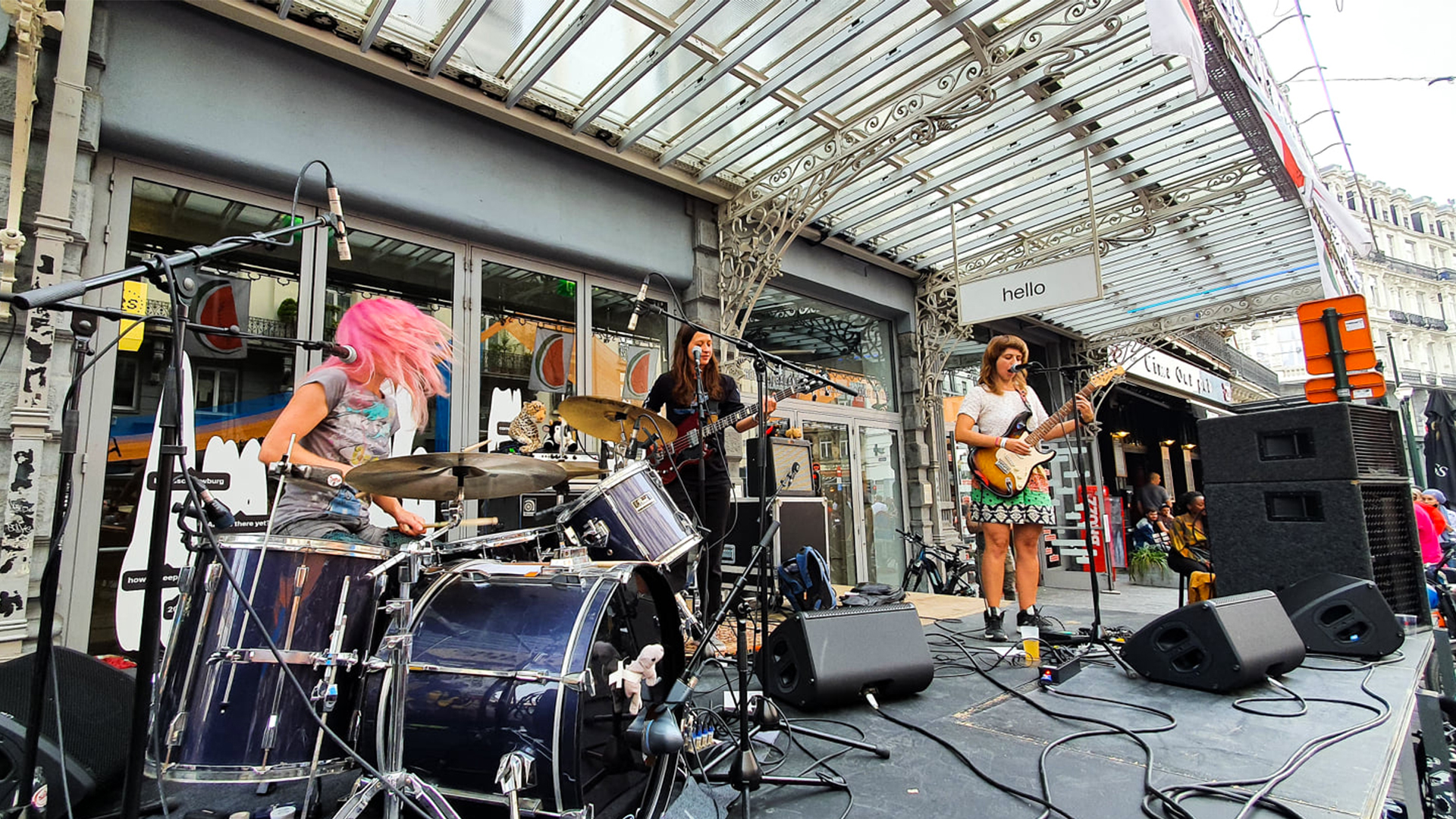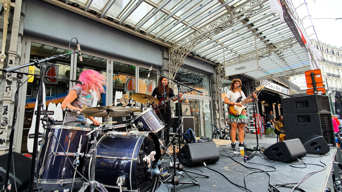 Le 19 septembre 2021, le trio expérimental belge 100% féminin PEGA se produisait en plein air devant le Beursschouwburg dans le cadre de la journée sans voiture. On en a profité pour lui poser quelques questions.